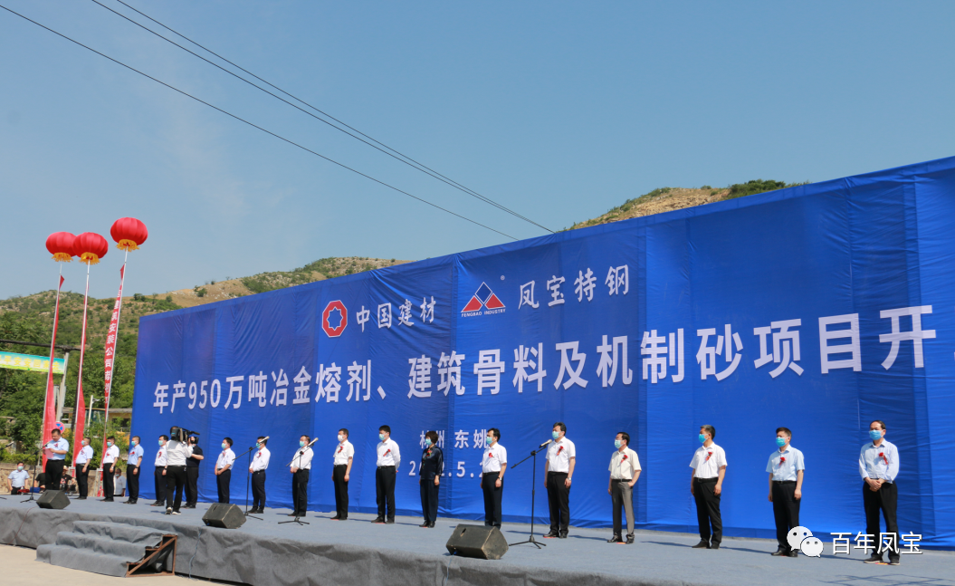 2022年5月21日,凤宝冶金炉料公司年产950万吨冶金熔剂、建筑骨料及机制砂项目开工仪式隆重举行。出席此次活动的有:林州市领导王宝玉、孙建铎、杨振宇、韩爱民、李希忠、李茂生、王志国、鲁红杰、李文广、赵兵辉、牛永奇、孙永红、栗强云,凤宝集团领导李广元、李静敏、李志伟。凤宝特钢有限公司副总经理、凤宝冶金炉料有限公司董事长杨红瑞、’安阳中联水泥有限公司副总经理、凤宝冶金炉料有限公司总经理张建民也参加了仪式。市委副书记杨振宇主持。