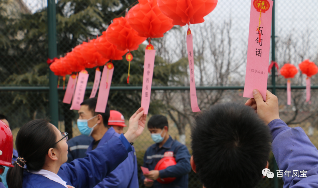 2022-02-16 administrator 凤宝特钢集团欢声笑语闹元宵 导语2月15日下午,“河南凤宝特钢集团2022年正月十五闹元宵主题活动”分别在特钢和管业篮球场同时进行。这是凤宝特钢集团为丰富职工文化生活,增强职工的幸福感和获得感,由河南凤宝集团工会联合会组织筹办,为广大员工献上的一份精美文化大餐。活动内容主要有,“猜灯谜”“愚公移山”“趣味投篮”“趣味贴王字”“趣味套象鼻”等游戏。红红的灯笼衬托出欢庆的节日氛围,一条条谜语吸引了众多员工参与,大家面对谜面,或驻足凝思,或小声探讨吃吃发笑。灯谜内容涉及广泛,包括安全生产常识、字、成语、历史等,突出了文化性,增添了趣味性。猜中者喜得奖品,兴趣倍增;猜错者再接再厉,从头再来。飘动的谜面、涌动的人群,使活动现场到处弥漫着浓浓的节日气息。“愚公移山”活动现场,只见参赛者把吸管含在嘴里,弯腰、低头,从A盘里对准乒乓球猛地一吸,慢速移送到另一边的B盘里。反复如此,一次次往返在两点之间,躬身笃行、脚踏实地,看谁“搬”动的山(小球)既快又多。旁边的观众紧盯参赛者,凝神、屏气,表情各异,用心、滑稽、友好,欢乐充满了现场。“投中啦,投中啦!”随着一声欢呼,大家都把目光投向了趣味象鼻套游戏。“凤宝是有文化、有情怀的企业,我刚入职就赶上了活动,增进了同事间的了解,加快了我与工友们的感情,感到很快乐。”一名新入职的大学生员工说。据悉,春节过后,凤宝集团工会联合会按照年初既定的重点工作目标,以有利于“青工素质提升”、有利于“搭建成长平台”、有利于“储备适企人才”为原则,提前行动,做实方案,积极组织筹办此次活动,使活动取得圆满成功,拉开了2022年工会活动序幕,进一步坚定了活动引领员工心向企业的决心和信心。